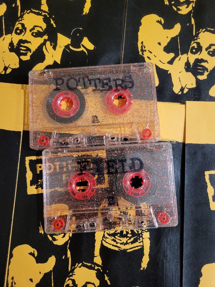 (OGR-084) // Potters Field - Tomorrow For Yesterday ( + Not This Way) // red glitter tapes /60 with screenprinted envelopes & lyric sheet split into two different colored cases //